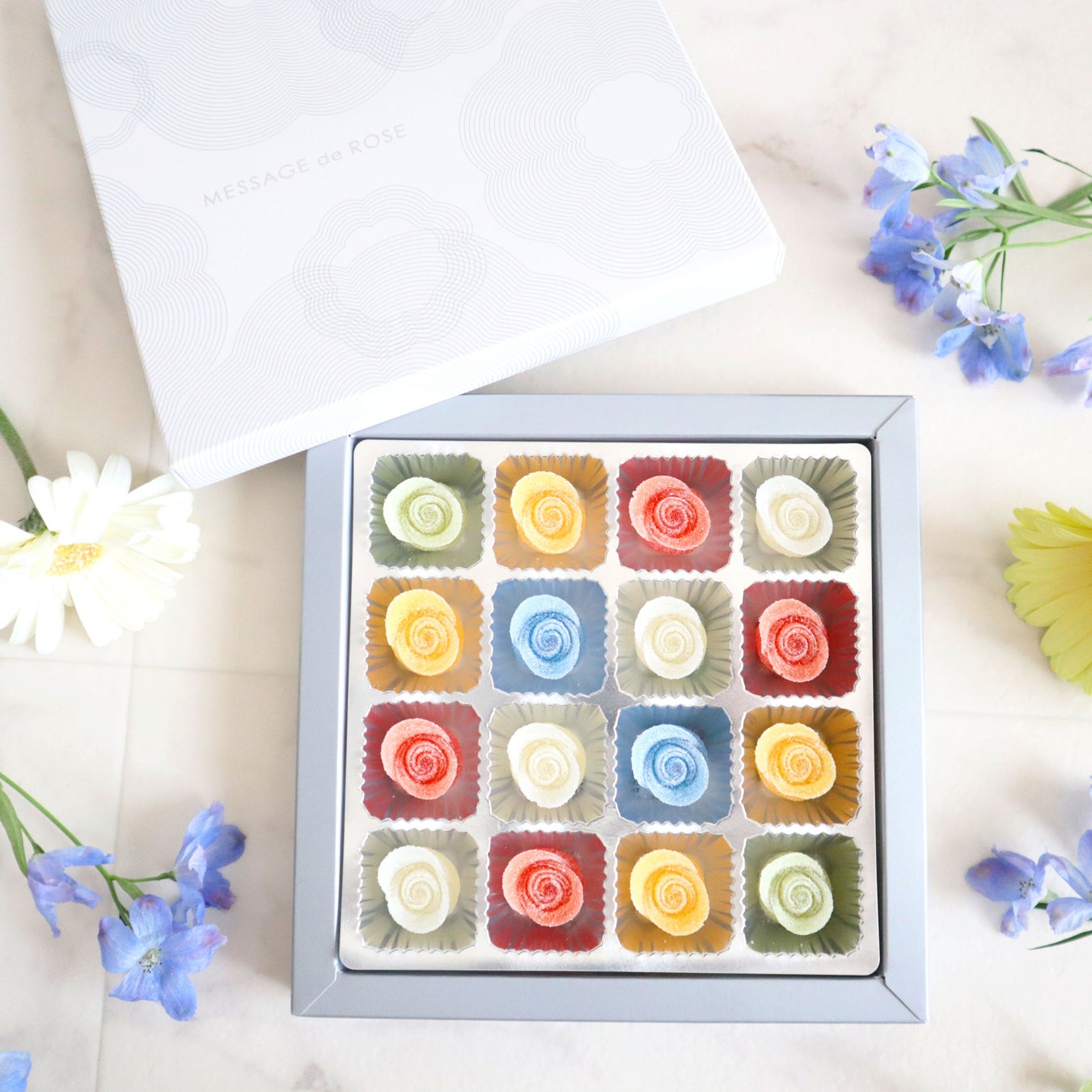 バラは一つずつ職人たちによって手作りされ、立体感にこだわり、お花の形状を美しく再現。見た目の美しさに加え、味わいにもこだわりを。箱を開けた瞬間に広がるフルーティな香り、そして本物のフルーツ果汁をたっぷり使用したみずみずしい味わい、口に含むと、まるで生菓子のように上品な果実の風味が広がります。白を基調とした高級感あふれるボックスは、ご用途を選ばず、お中元・お持たせ・季節のご挨拶・大切な方への贈り物としても最適です。贈る人のセンスと心遣いが伝わる、ワンランク上のギフトをお届けします。