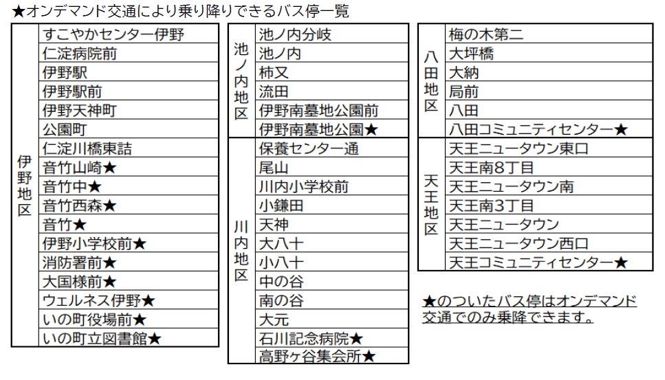 利用方法:アプリ「伊野循環線予約アプリ」もしくはお電話にて予約