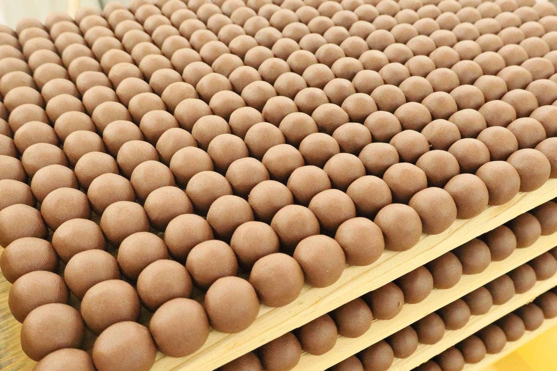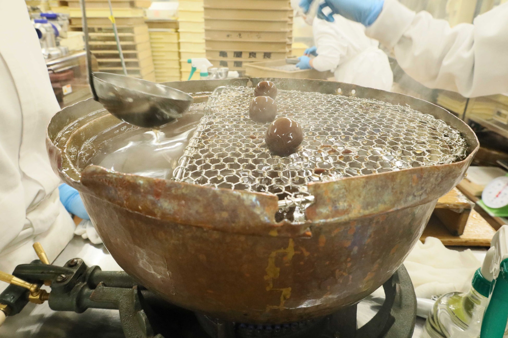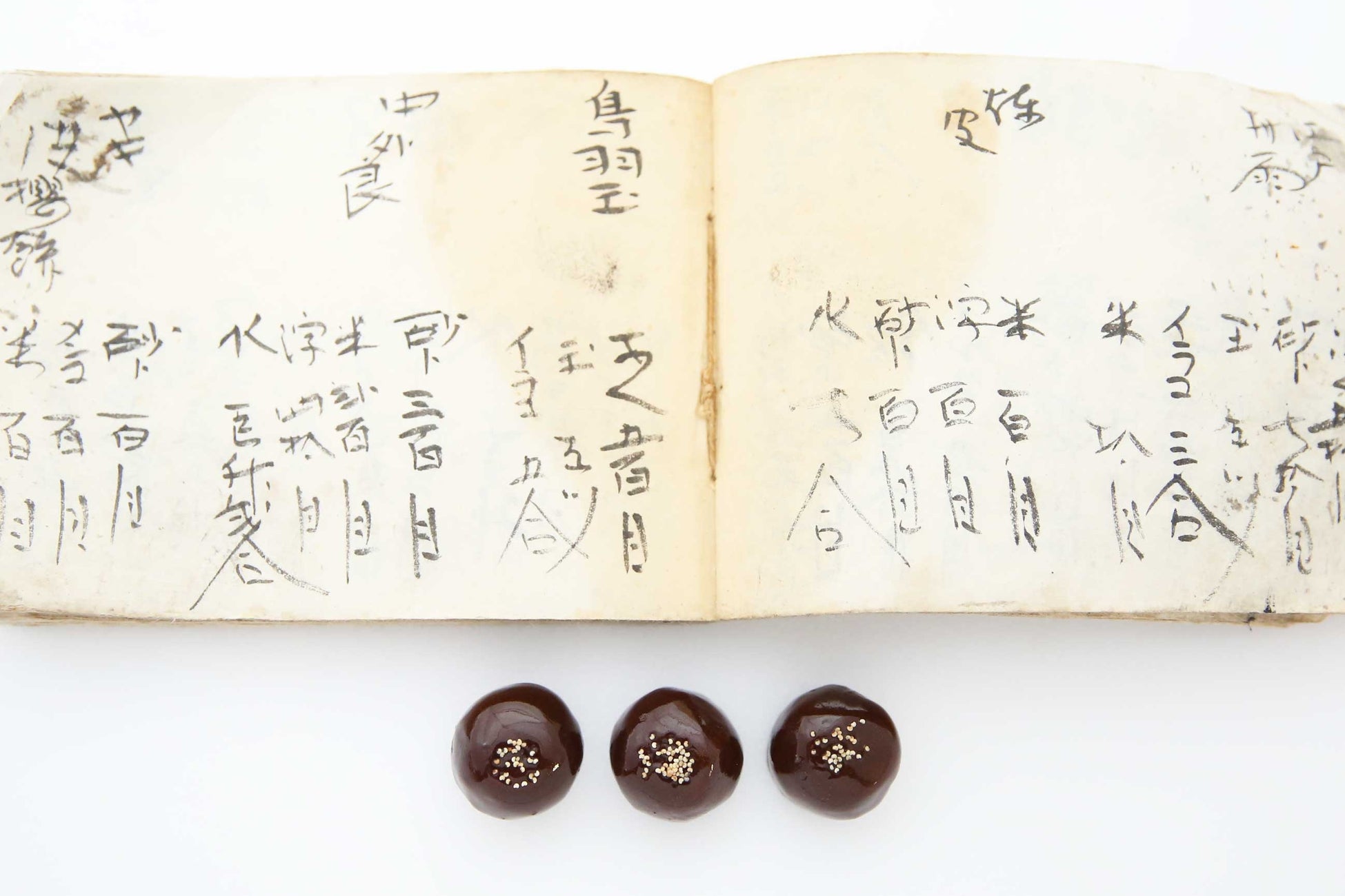 職人の手作業によって丁寧に作り上げています。亀屋良長には、明治時代の烏羽玉の配合帳が残っていますが、当時は今より大きく、砂糖の割合も多かったようです。長年作り続けてきた烏羽玉ですが、時代の変化に応じて、大きさ、味、見た目は少しずつ変わってきています。