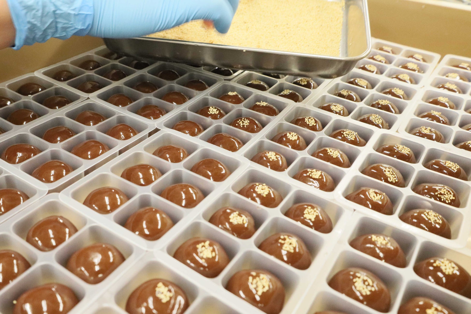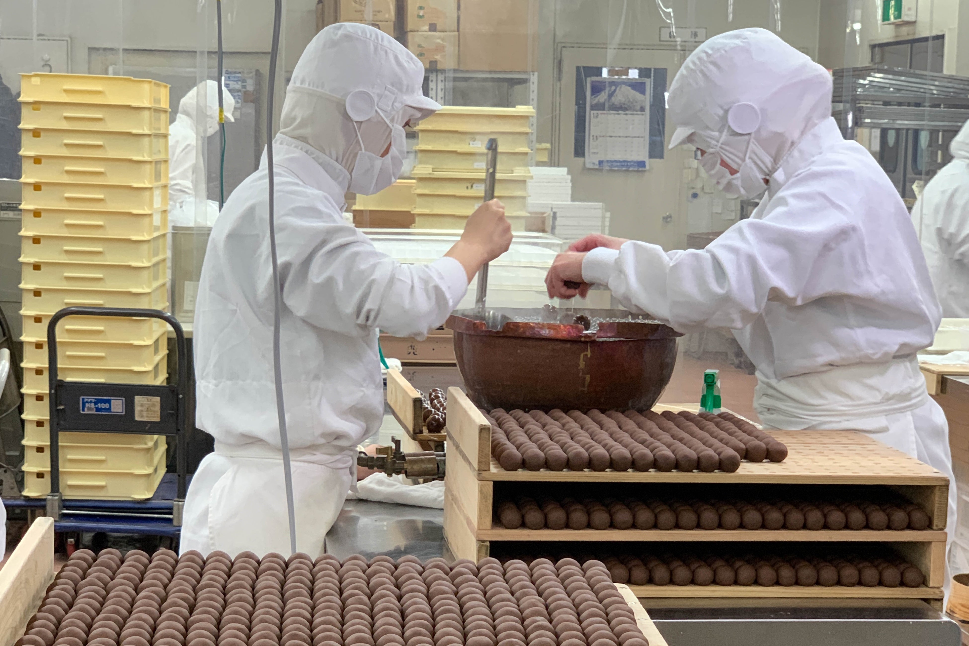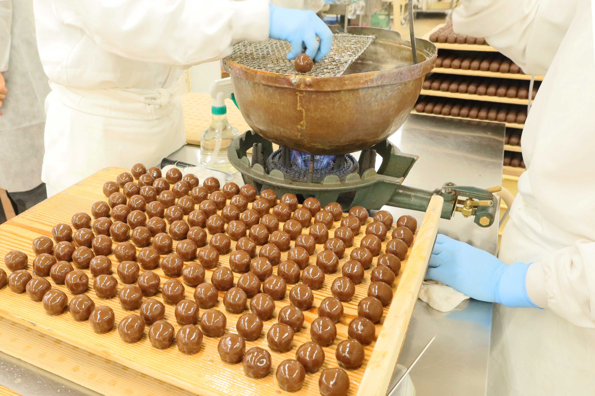 職人の手作業によって丁寧に作り上げています。亀屋良長には、明治時代の烏羽玉の配合帳が残っていますが、当時は今より大きく、砂糖の割合も多かったようです。長年作り続けてきた烏羽玉ですが、時代の変化に応じて、大きさ、味、見た目は少しずつ変わってきています。