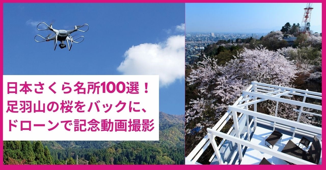 満開の桜と、福井市街地が一望できるスカイデッキにて、ドローンによる記念撮影。日本さくら名所100選にも選ばれている足羽山の魅力を発信するきっかけを提供。