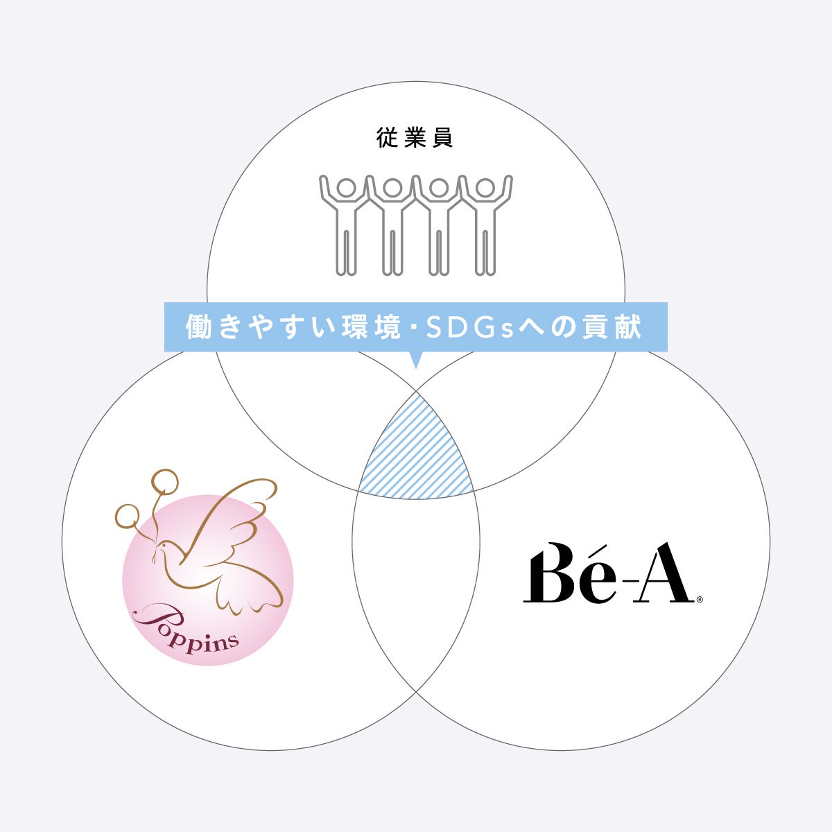 超吸収型サニタリーショーツ Bé-A〈ベア〉が展開する、企業向け福利厚生サービス「Bé-A ベネフィット プログラム」を、働く女性の育児・介護支援のリーディングカンパニー 株式会社ポピンズにて開始。