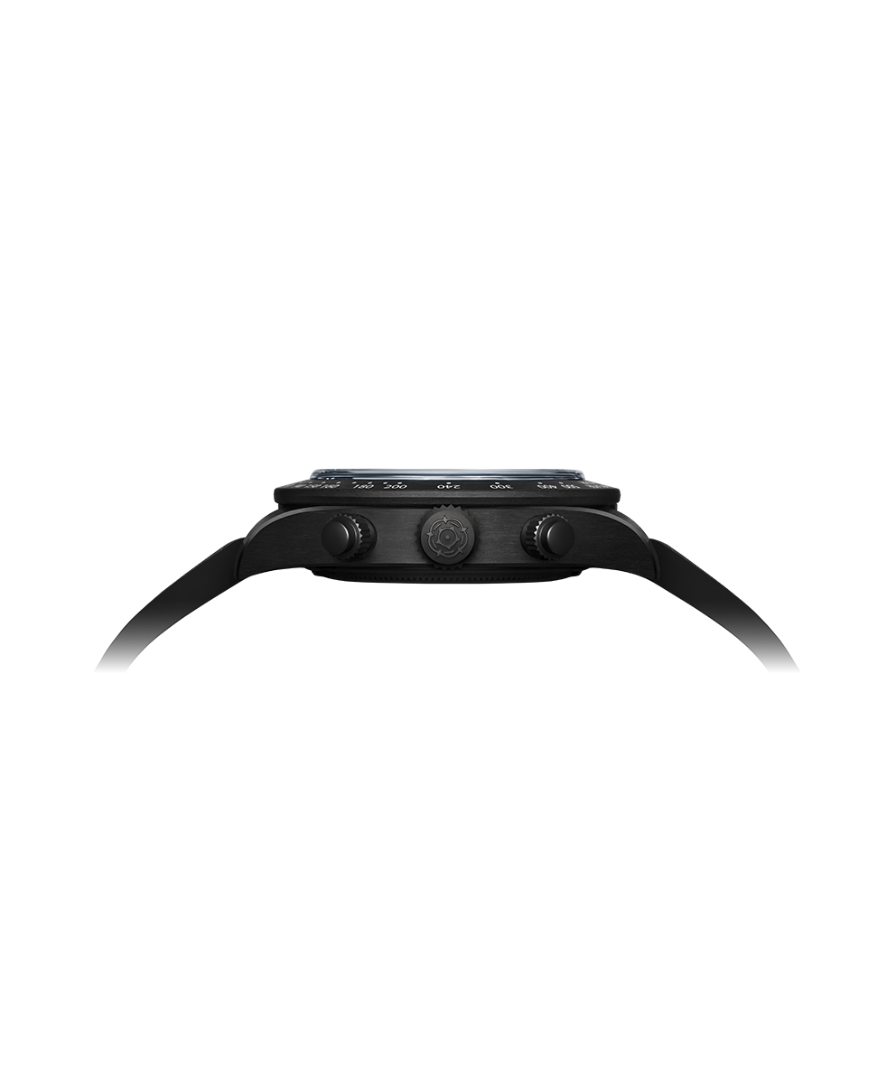 新作のブラックベイ クロノ “カーボン 25”は、サーキットにおけるチューダーの長い伝統を受け継ぐ一本。この新しいモデルは、機械性能向上を追求し続けるチューダーの飽くなき情熱を体現している。カーボンファイバーは、軽量性という大きなアドバンテージを備えた、レーシングクロノグラフに最適な素材だ。重量が軽ければ軽いほど、スピードは増す。そのスピードを正確に計測するのが、マニュファクチュール キャリバー MT5813のクロノグラフ機能と、同じくカーボンファイバーで作られた一体型のタキメーターベゼルだ。ハイブリッドストラップをケースに固定するエンドリンクにまでカーボンファイバーを採用し、わずかな軽量化にも徹底している。さらに、デザイン上の美しさにも妥協はない――クロノグラフのサブカウンターまでもがカーボンファイバーで仕上げられている。