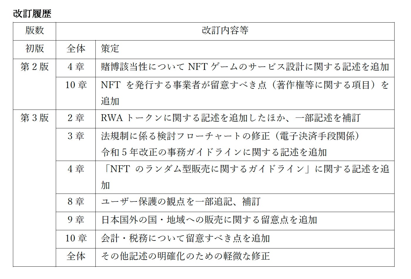 この改訂により、NFTビジネスに参入する事業者にとって道しるべとなる情報が網羅されたものとなっております。