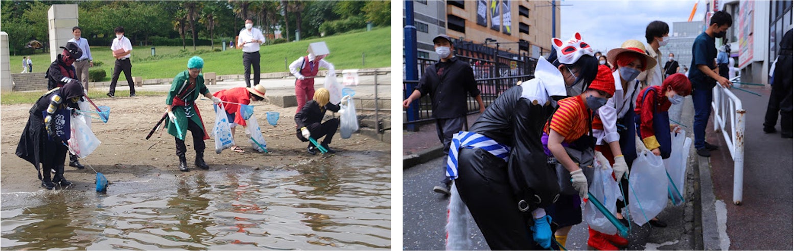 漫画やアニメ、ゲーム等に登場するキャラクターになりきるコスプレイヤーの中には、自身の撮影で使用するロケーションが汚れないよう、日頃から率先してごみ拾いを行っている方も多くいます。世界コスプレ文化普及協会では、環境意識とSNS発信力が高いコスプレイヤーとともに、海洋ごみ削減の活動を実施しています。