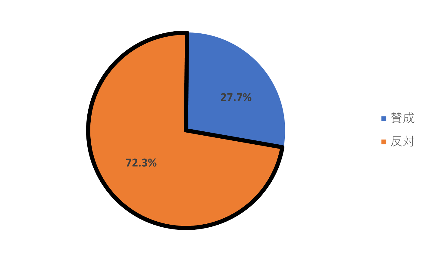 今回の制度開始後の調査であらためて本制度についての賛否を聞いたところ、「賛成」は27.7%、「反対」が72.3%だった。