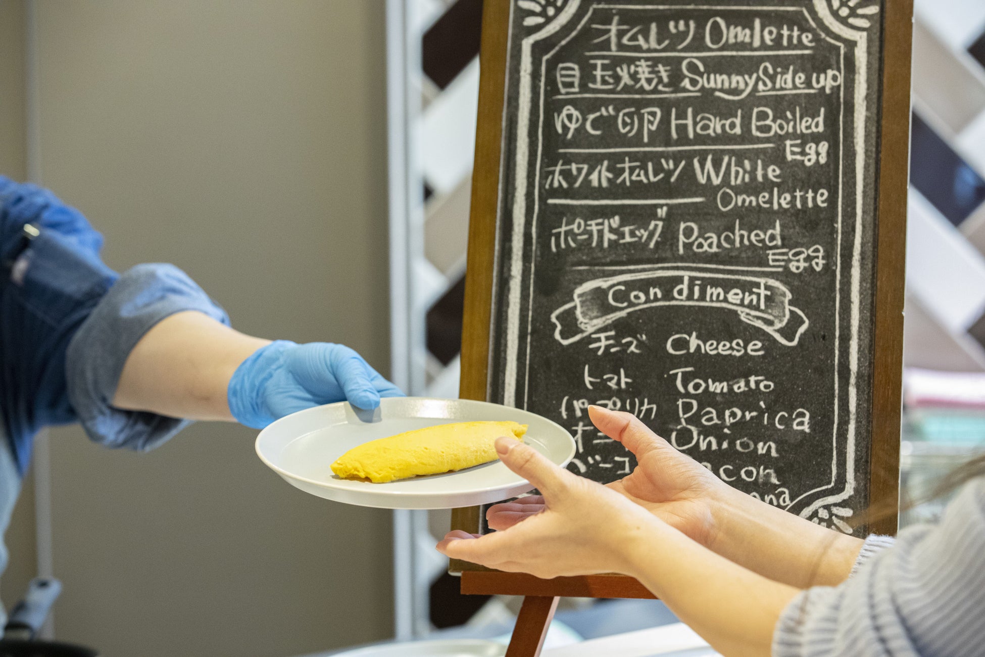 オープンキッチンでトッピング*をカスタマイズできるオムレツを