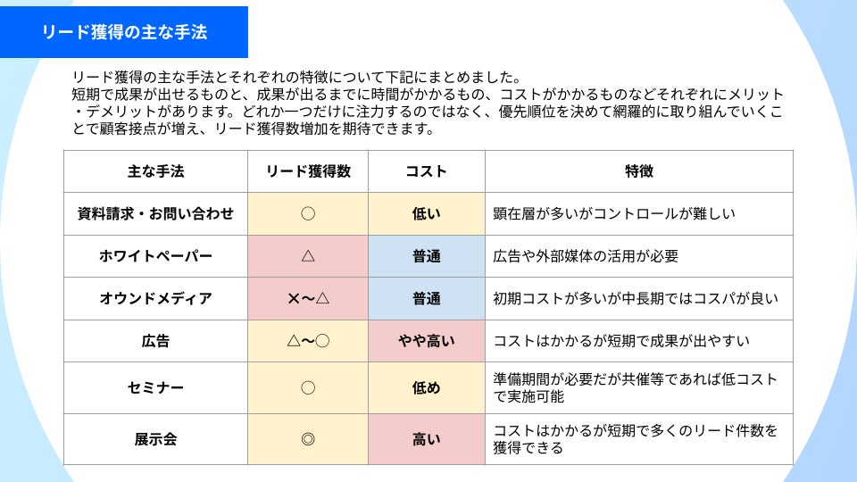 このような背景から、BtoBにおけるリードジェネレーションの戦略は単なるリード獲得に留まらず、リードをどのように育成し、最終的に商談化するかというプロセス全体を最適化することが求められています。特に、リードの質を高めることが、成果を最大化するための鍵となります。リードタイムの短縮や、より効率的なリード獲得が企業競争力の向上に直結します。