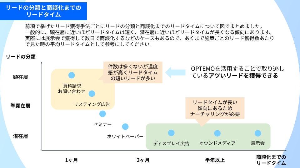 本ホワイトペーパーでは、リード獲得の基本手法、リードの分類と商談化までのプロセス、そしてOPTEMOを活用した具体的なリード獲得術について紹介します。