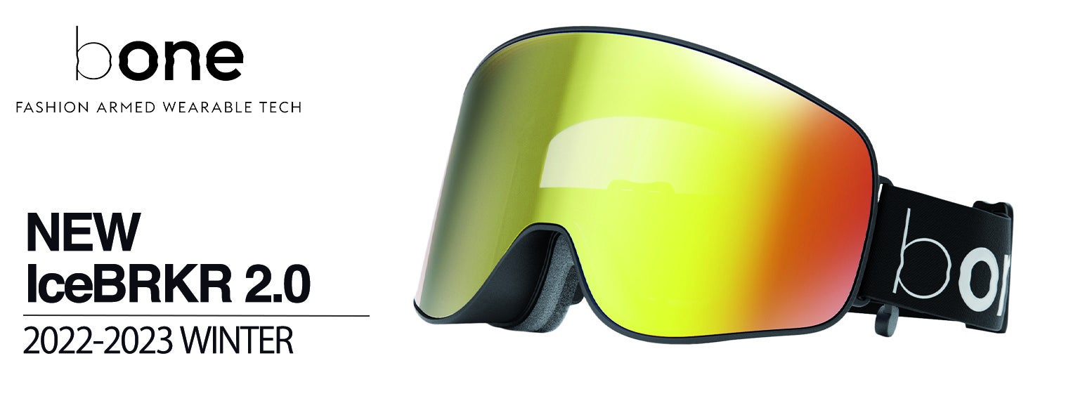22/23シーズンに新たに登場する最新モデルが「bONE IceBRKR 2.0」です。2022/23シーズンからは、【bONE】 IceBRKR2.0に進化。IceBRKR2.0は新たにハイコントラストレンズを搭載、音質を向上させる新形状の骨伝導アームを採用、前モデルに比べバッテリー性能も25%UPしました。