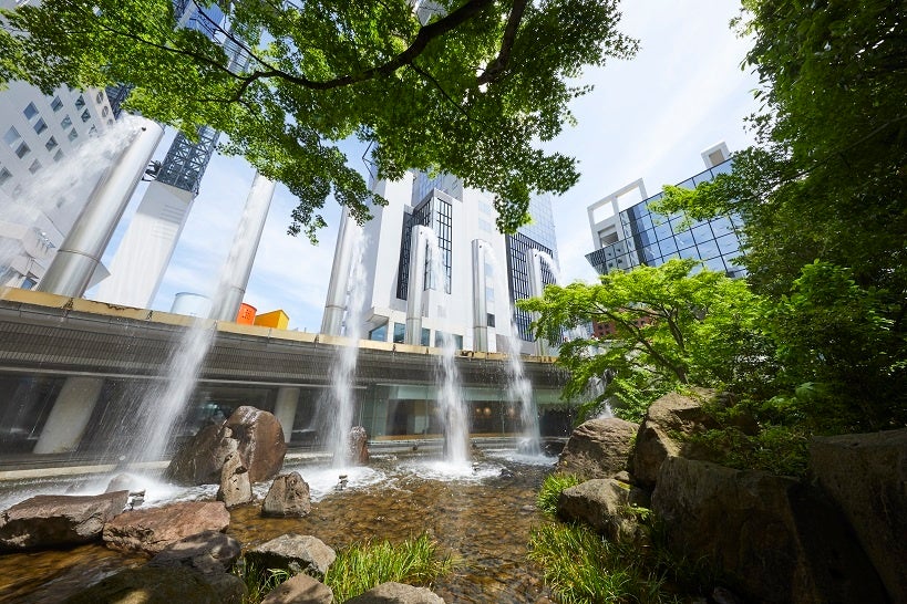 梅田スカイビルのある新梅田シティには、約2,100本の木々が生い茂る中、滝や小川の流れる「中自然の森」や、約8,000㎡の広大な敷地に日本の原風景である里山を再現した「新・里山」など自然に触れることもできます。