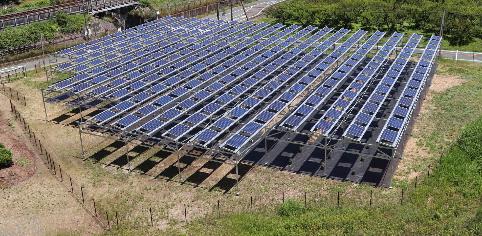太陽光発電によるCO₂削減と荒廃農地を再生 ~リユースパネルを活用したソーラーシェアリングでオリーブを栽培~