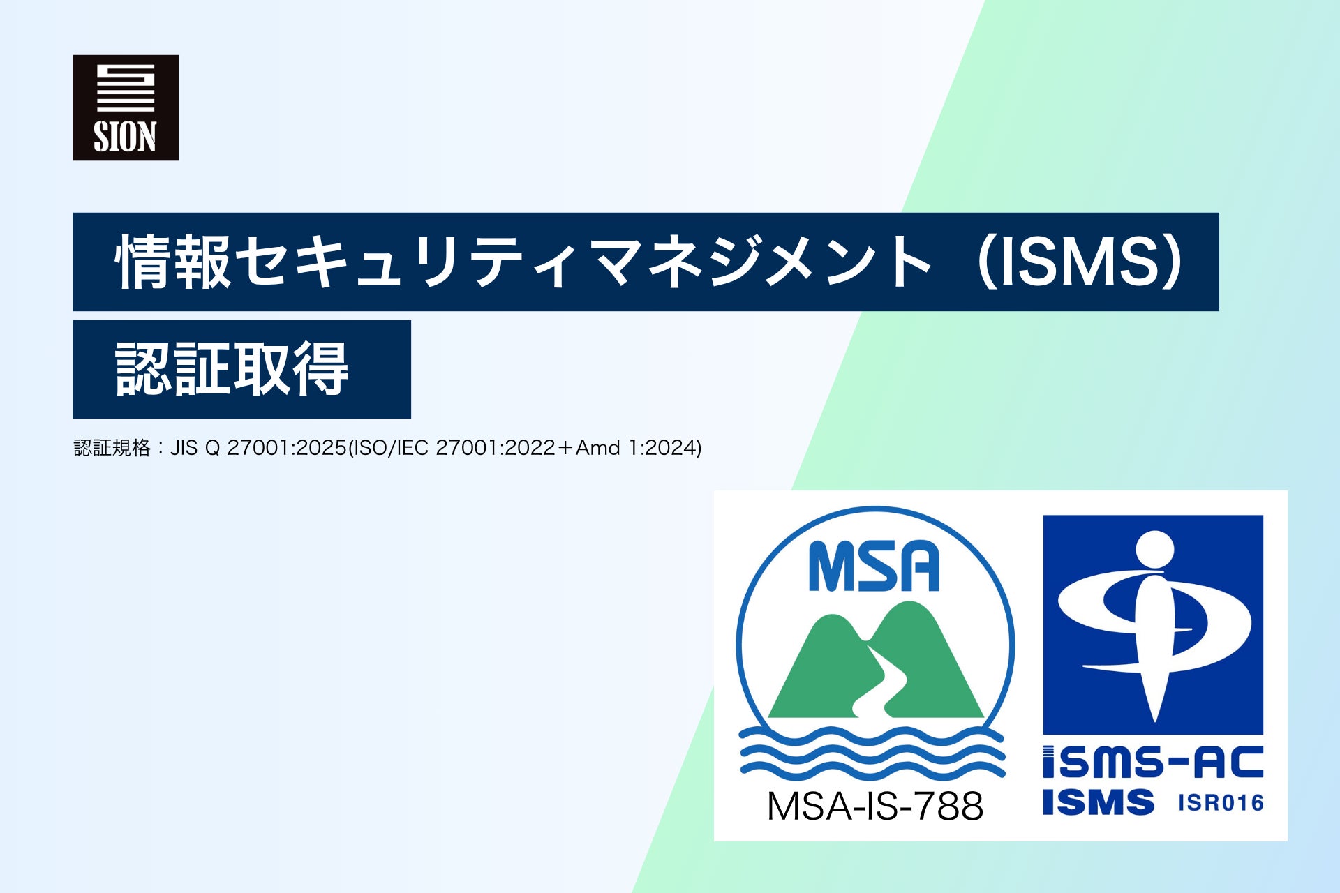 株式会社シオン(本社:東京都港区、代表取締役:井上 勉)は、ISMS(Information Security Management System:情報セキュリティマネジメントシステム)の国際規格「ISO/IEC 27001:2022」認証を、2025年9月26日付にて取得いたしましたので、お知らせいたします。