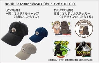 景品は、石ちゃんとゴジラの2ショットイラストが描かれたトートバッグやキャップ、ステッカー、さらには超豪華なサカジャン(スカジャン)も!5,000円(税込)以上の購入で抽選に応募できます。