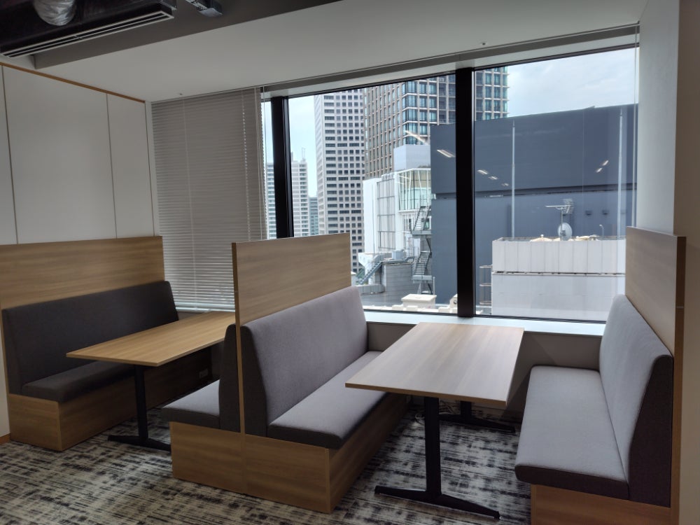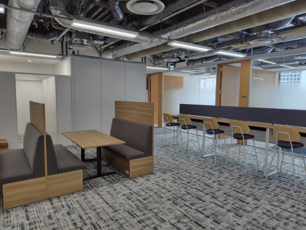 新本社事務所では、一人当たりの就業スペースやオープンミーティングスペースの拡大、6フロアに分かれていたオフィスを2フロアに集約するなど、業務の効率化や多様な働き方を実現するオフィス環境を整備し、従業員がより働きやすい職場環境を確保いたします。