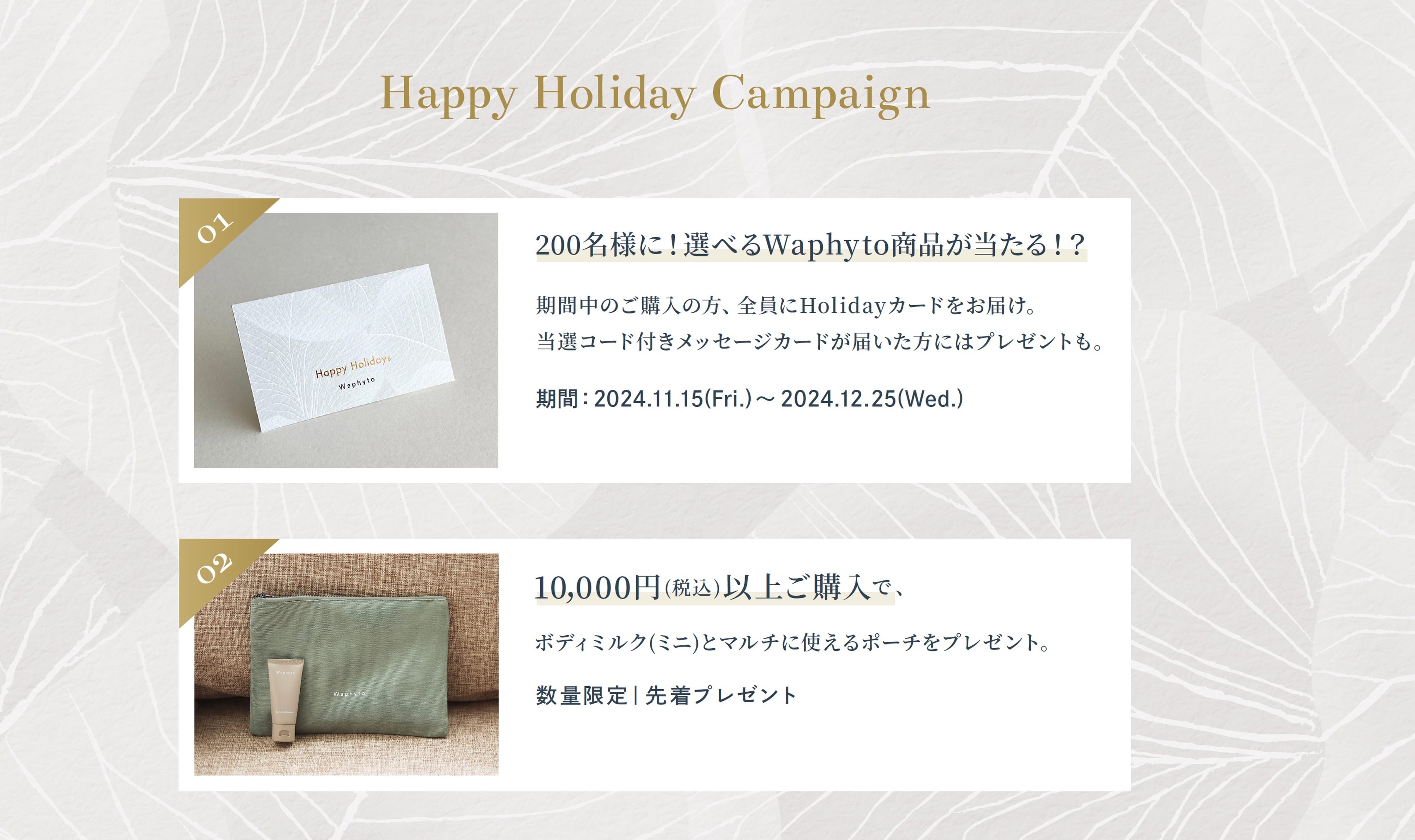 11月15日(金)より、公式オンラインストア、公式楽天市場店、直営店舗から販売をスタート。発売を記念して、ホリデーシーズンにぴったりのプレゼントキャンペーンもスタート。
