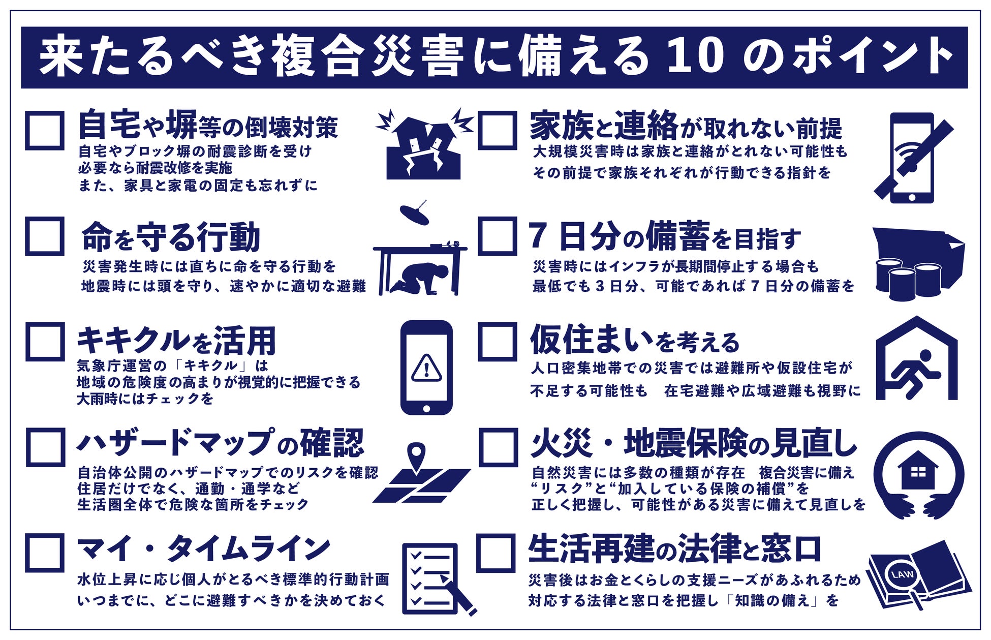 | 防災士 岡本正さんによる、来たるべき複合災害に備える10のポイント |