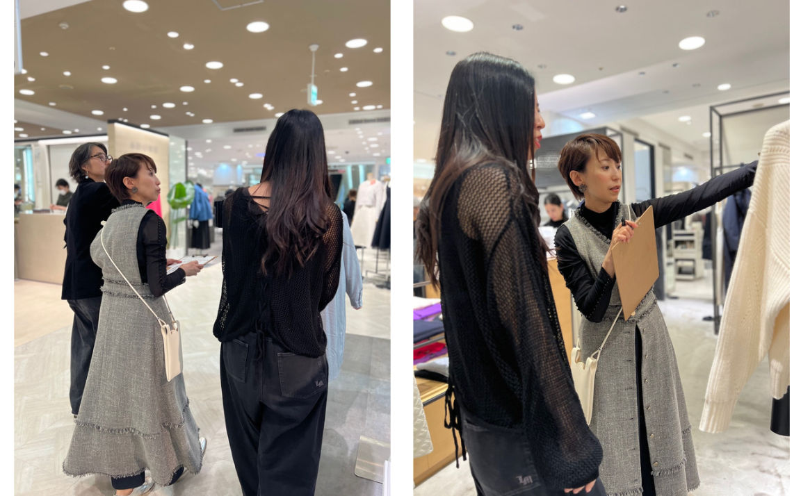 百貨店は敷居が高く感じられて普段は利用しないという30代女性のお客様も、婦人服フロアのお買い物同行で気になる商品をセレクトしてcawaluイベントスペースでまとめて試着できること、ショップを横断してセレクトできることでの新しい発見を体験し、満足度高く複数ショップの商品をご購入されました。