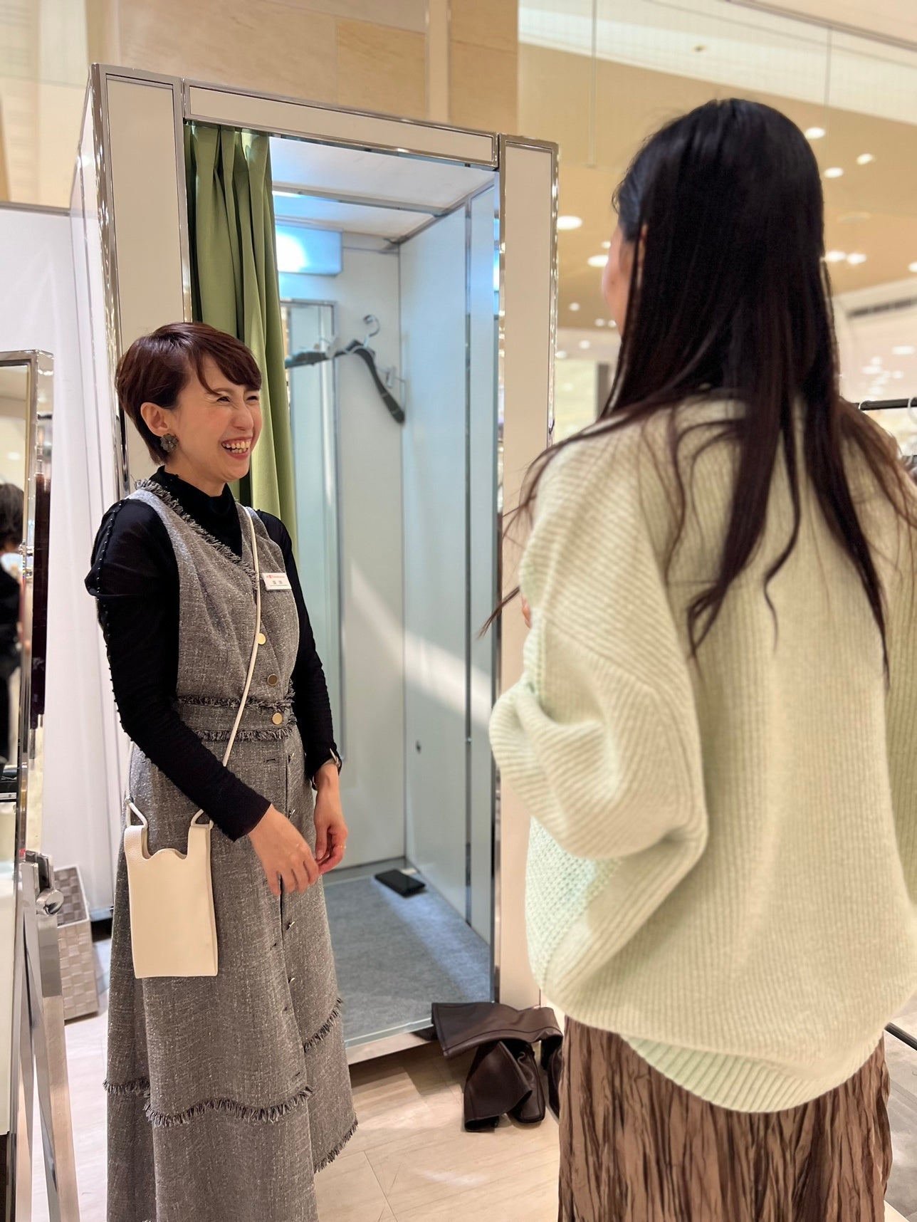 普段ながめているだけで、手に取る勇気が出なかった洋服を試す事ができてとても嬉しかったです。アドバイスも細かく丁寧でとても楽しい時間でした