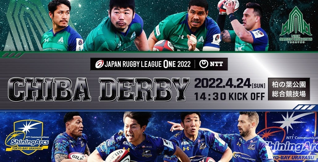 東葛エリアを拠点に活動するラグビーフットボールチームのNECグリーンロケッツ東葛が4月24日(日)に柏の葉公園総合競技場でシャイニングアークス東京ベイ浦安を迎え、ホストゲームを開催。「千葉ダービー」をコンセプトに様々なイベントを開催する。