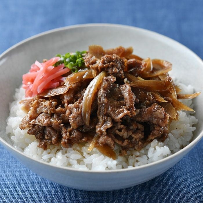 東京・荒木町の日本料理店『鈴なり』が手がける牛めしの具。化学調味料無添加のカツオ&昆布ダシをベースに、柔らかく煮込まれた国産牛すね肉の旨み、玉ねぎの食感、ごぼうの香りが噛むほどに広がる奥深い味わい。風味付けに加えた赤ワインが甘辛の醤油味に上品さを与え、技を実感できる。