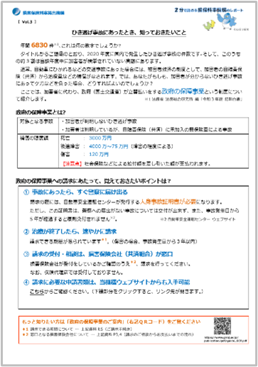 この度、「電車の移動中に一駅間で読める」、「すき間時間にパッと読める」分量の『2分で読める損保料率機構のレポート』シリーズの第3弾となる『ひき逃げ事故にあったとき、知っておきたいこと』を当機構ウェブサイトに公表しましたので、ご案内いたします。