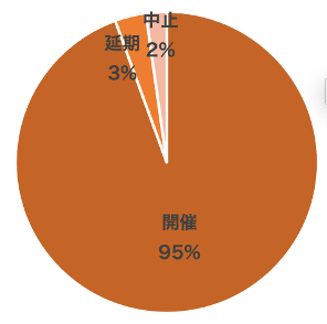 4月・5月に挙式予定のプレ花嫁に最新の情報を調査したところ、全体の95%が開催を決めているとの結果になった。
