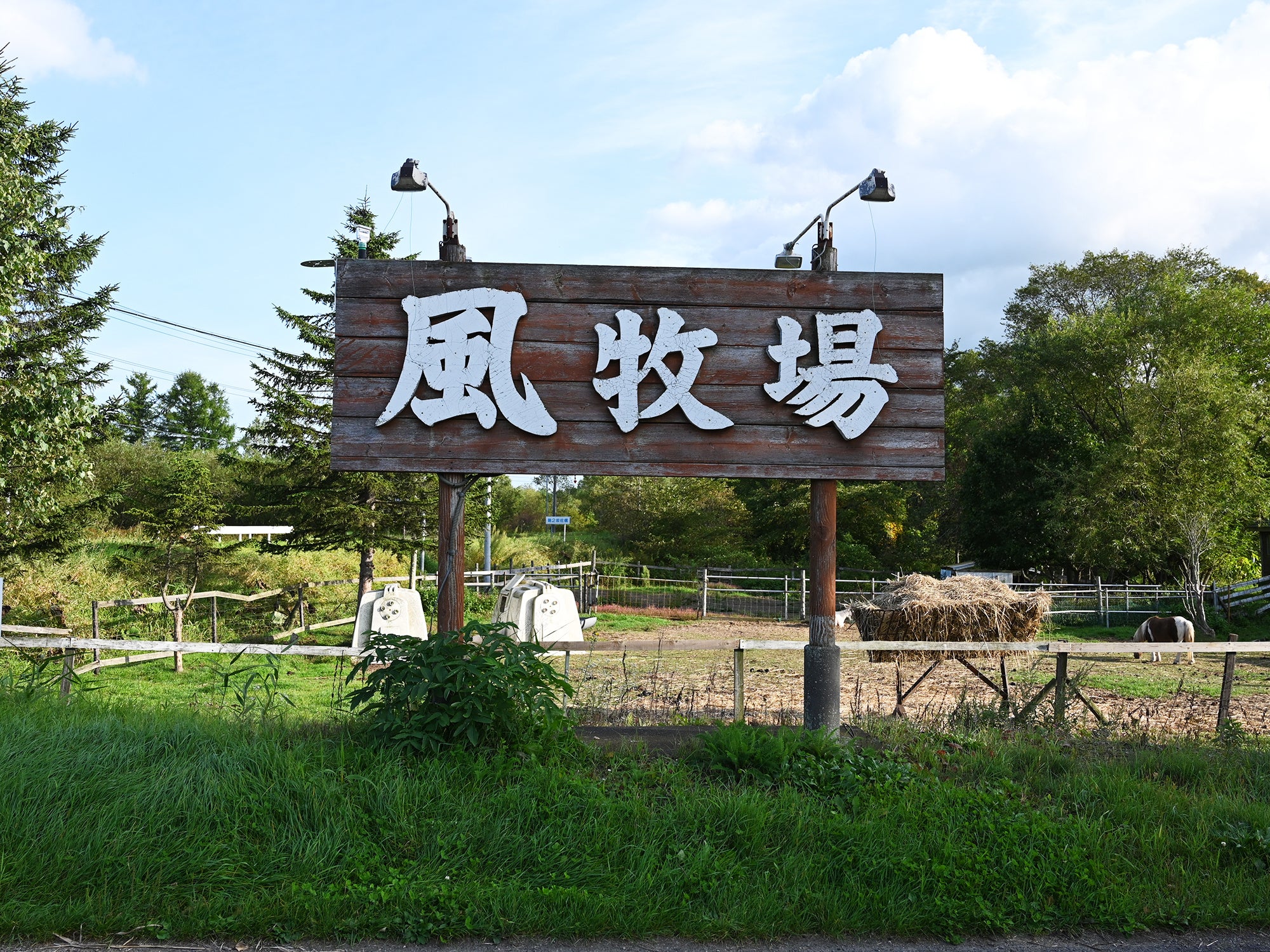 風牧場は小屋の横に大きなソフトクリームのオブジェが目印で、車道側のミニ牧場には、ヤギやポニーがいてお出迎えしてくれます。このミニ牧場を眺めながらソフトクリームを味わうのがまた格別です。
