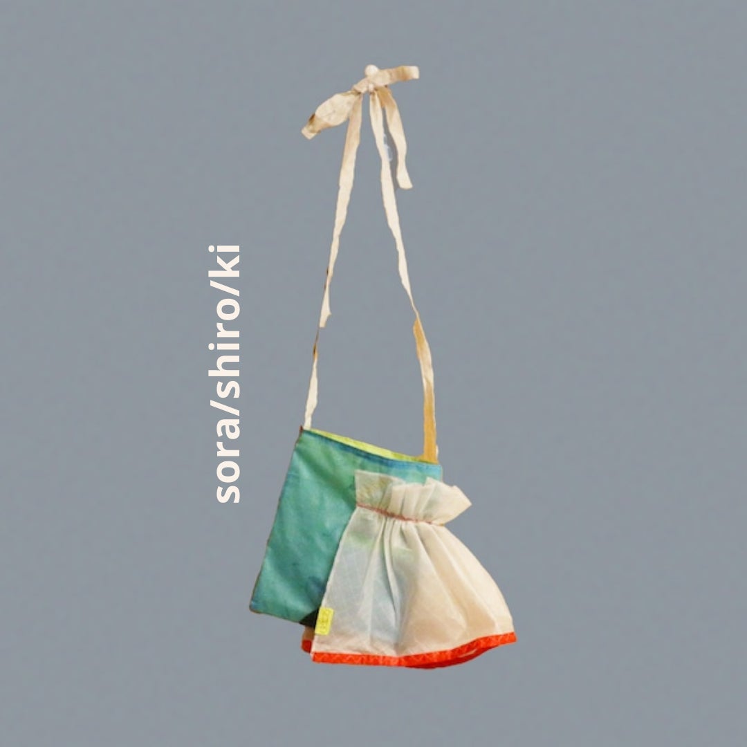 ふわりとなびくフリルが、風を孕んだヨットの帆の面影を感じさせます。リボンから着想を得た紐はお好みで結んでショルダーバッグにも、ハンドバッグにも、ウエストポーチにも...あなた好みのスタイルに。