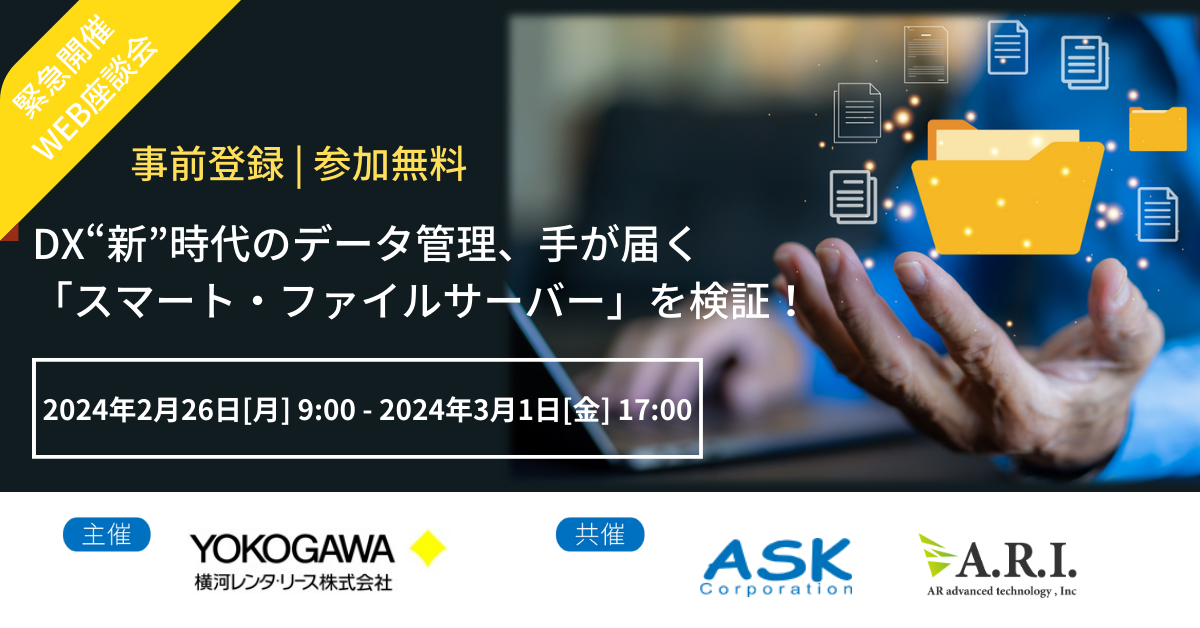 【2月26日(月)~Web座談会】緊急開催!横河レンタ・リース主催『DX“新”時代のデータ管理、手が届く「スマート・ファイルサーバー」を検証!』にARIが登壇