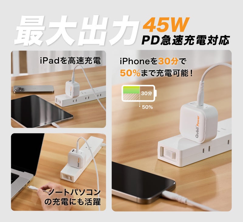・GaN(窒化ガリウム)採用で、充電効率改善・小型化に成功