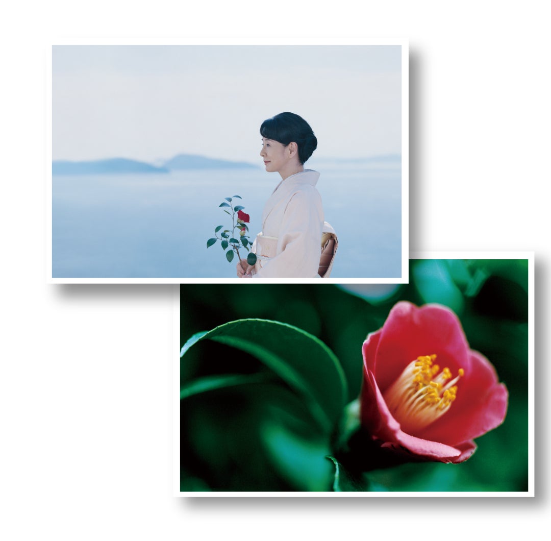 五島の椿商品をご購⼊いただくと、吉永小百合さん、五島の椿オリジナルポストカード二枚セットをプレゼント。