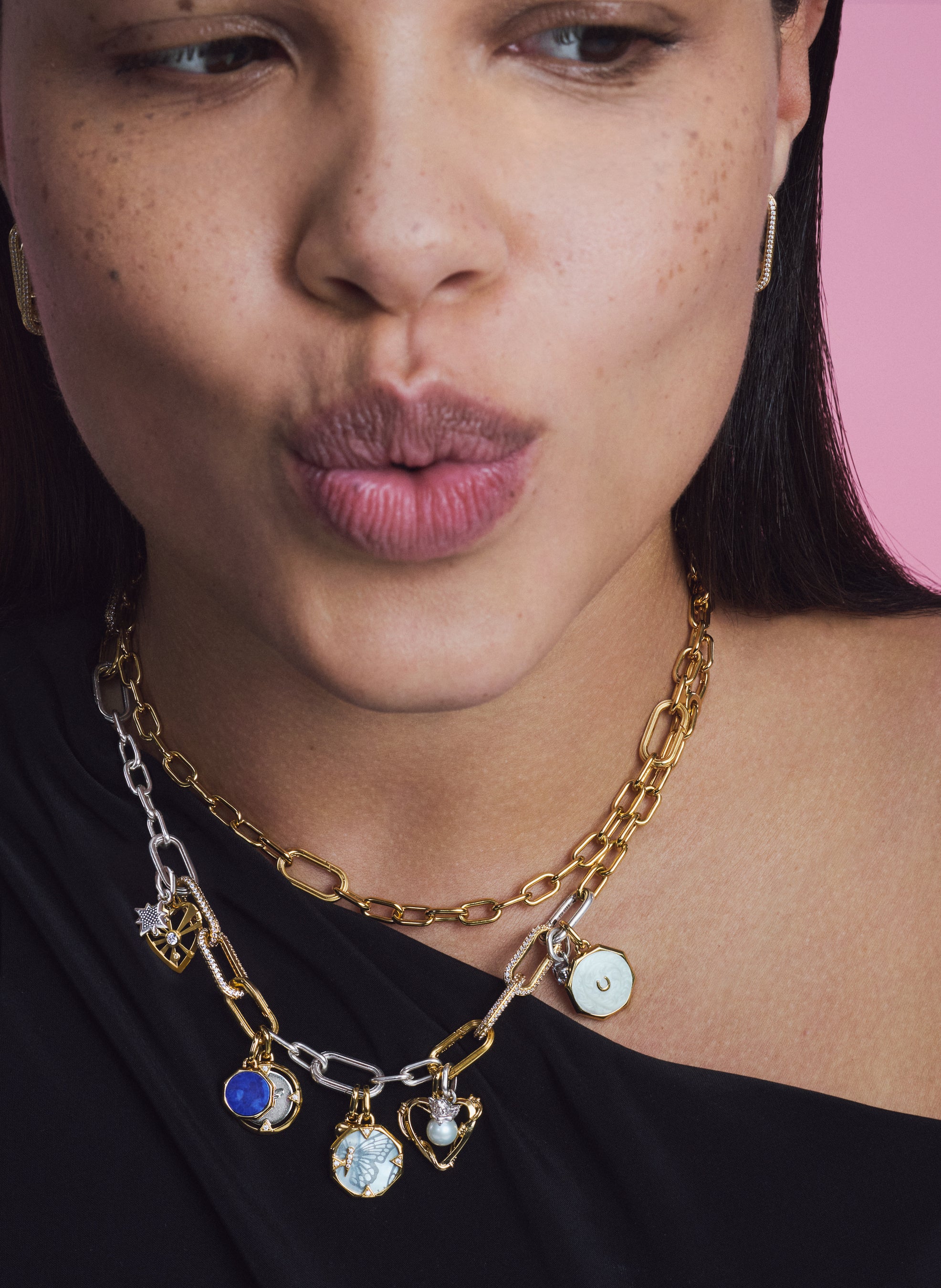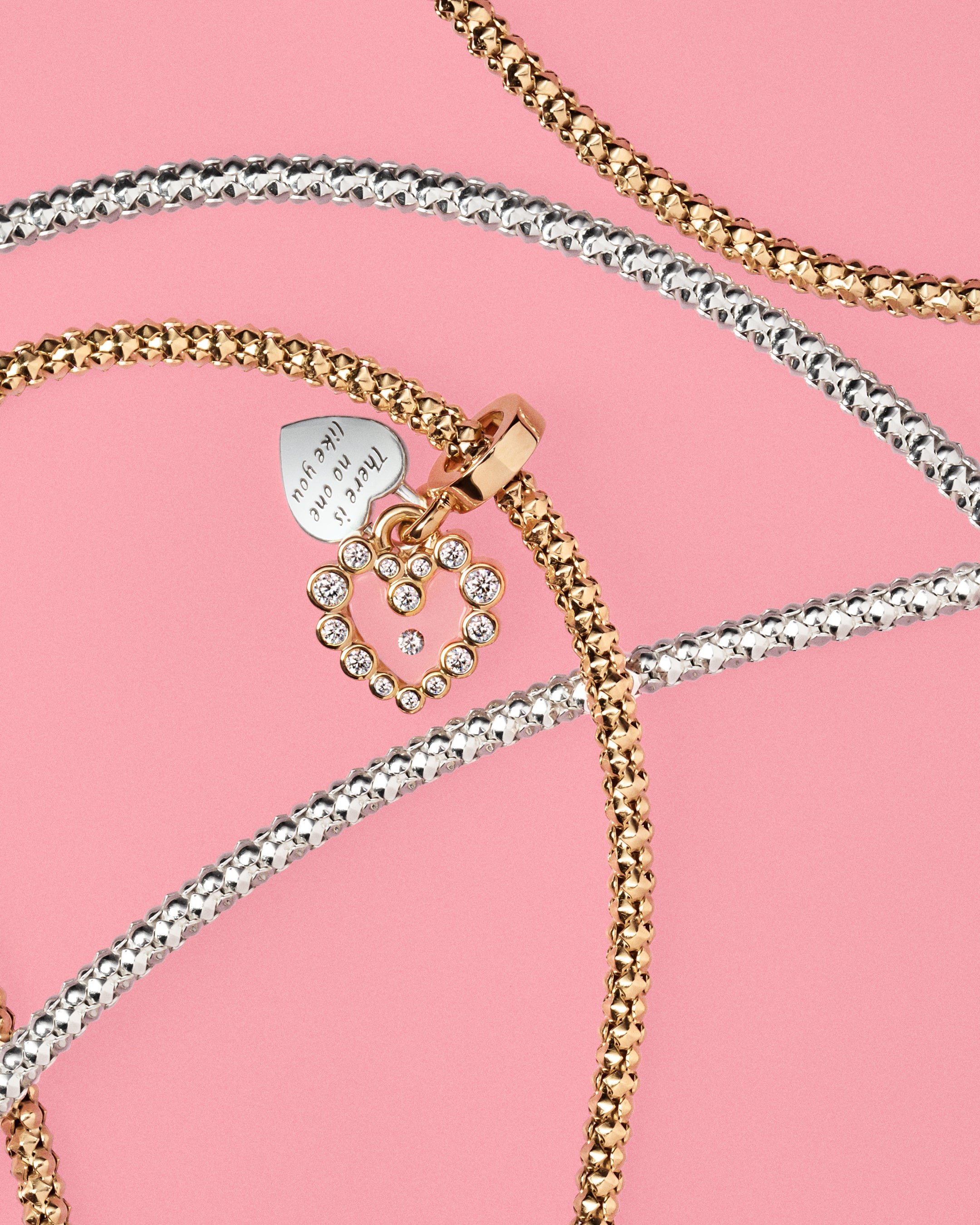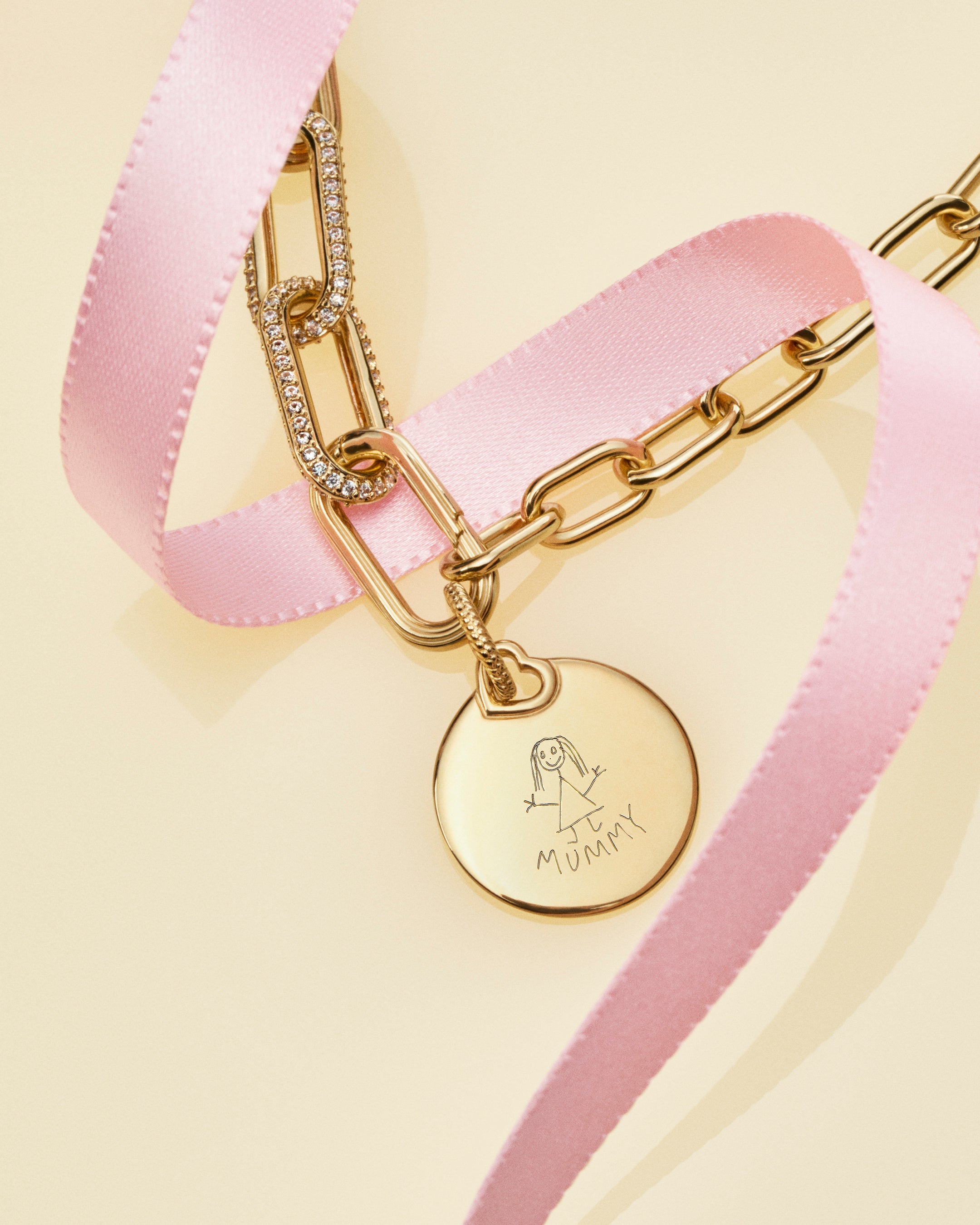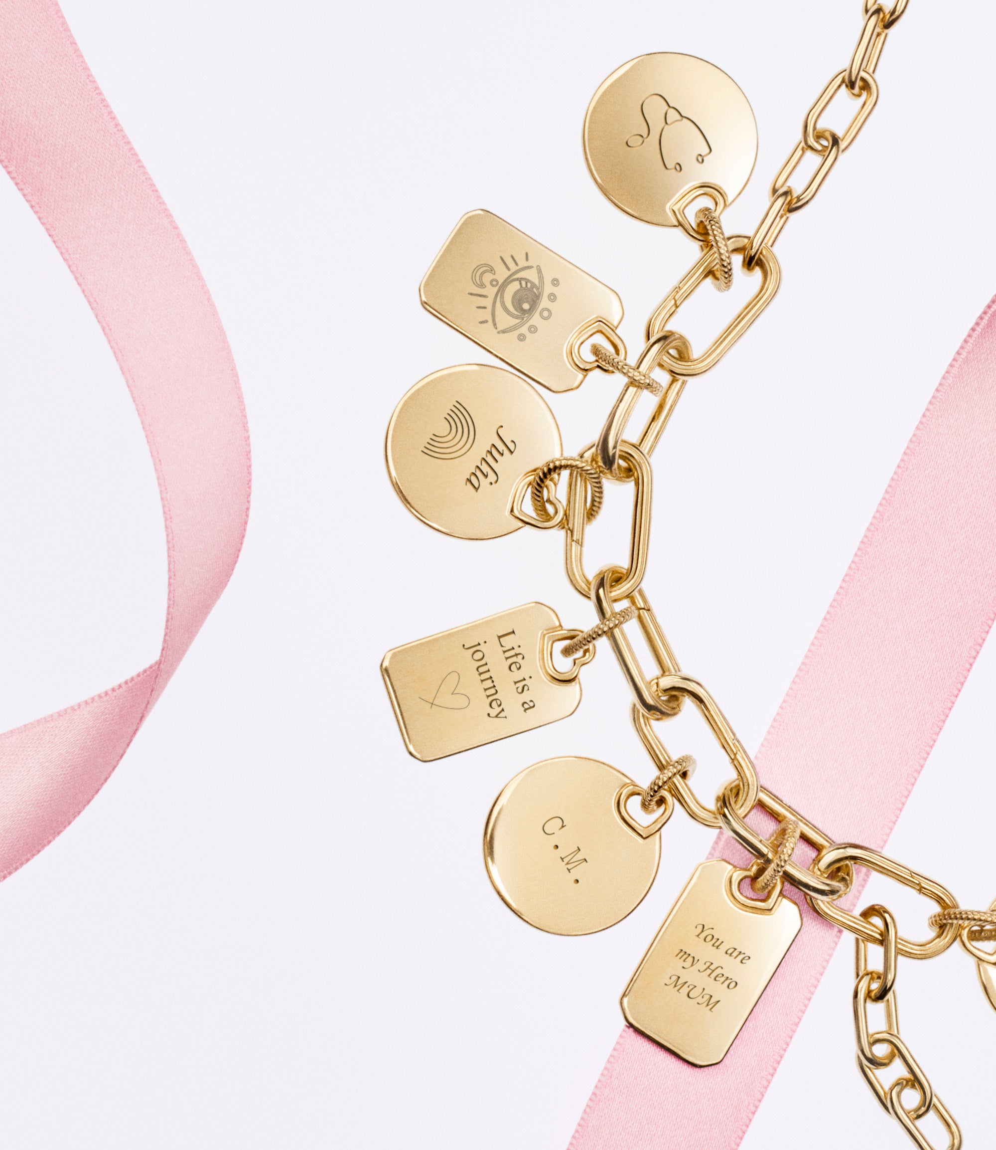 Pandora Momentsの新作チャームには、母親の強さを称えるハート型やインフィニティシンボルなどのチャームが揃います。また、心温まるメッセージやユーモラスな言葉を*エングレービング(刻印)することができるリングやチャーム、ブレスレットを展開。思いのこもった自分だけのカスタマイズをお楽しみいただけます。