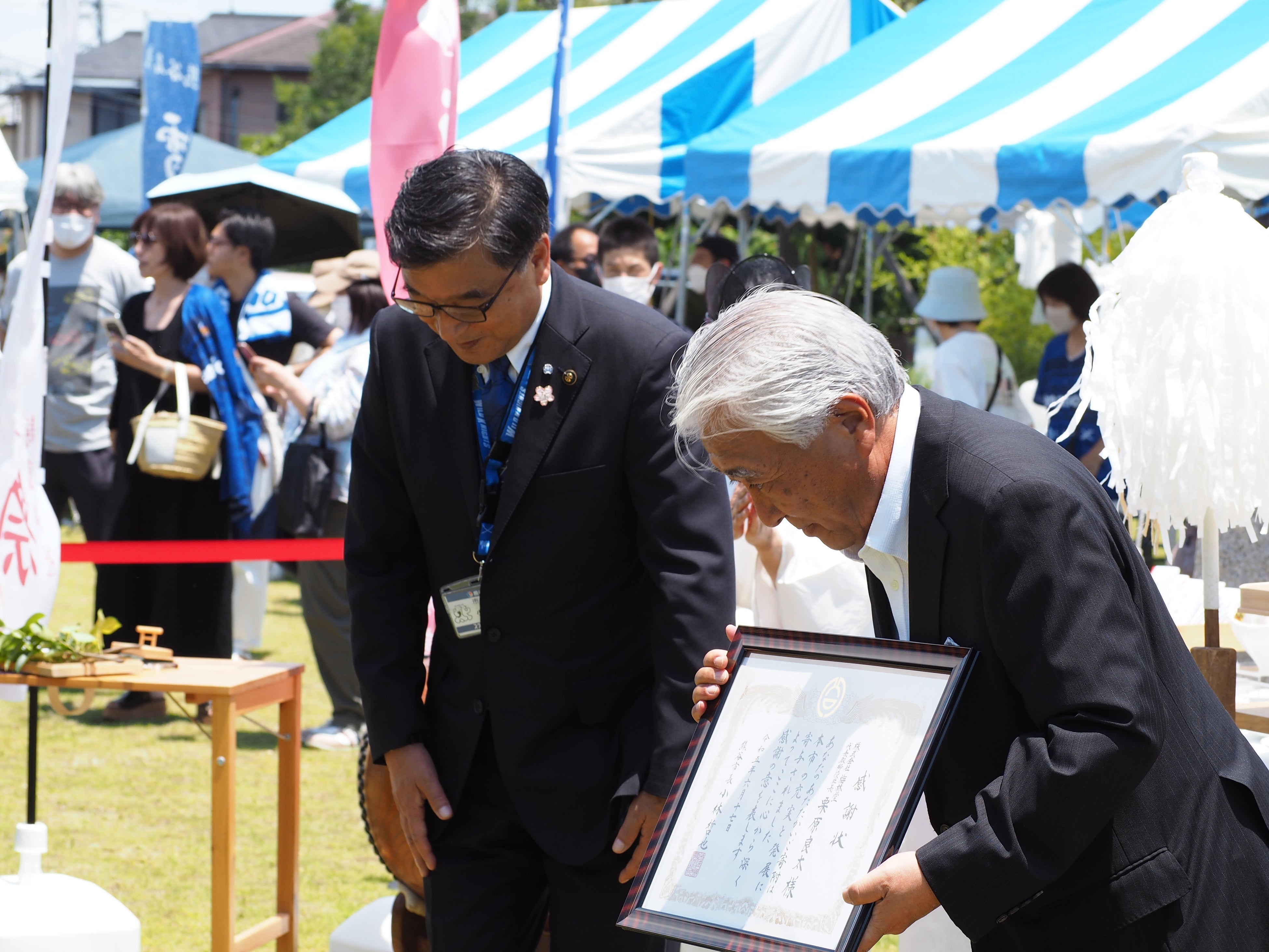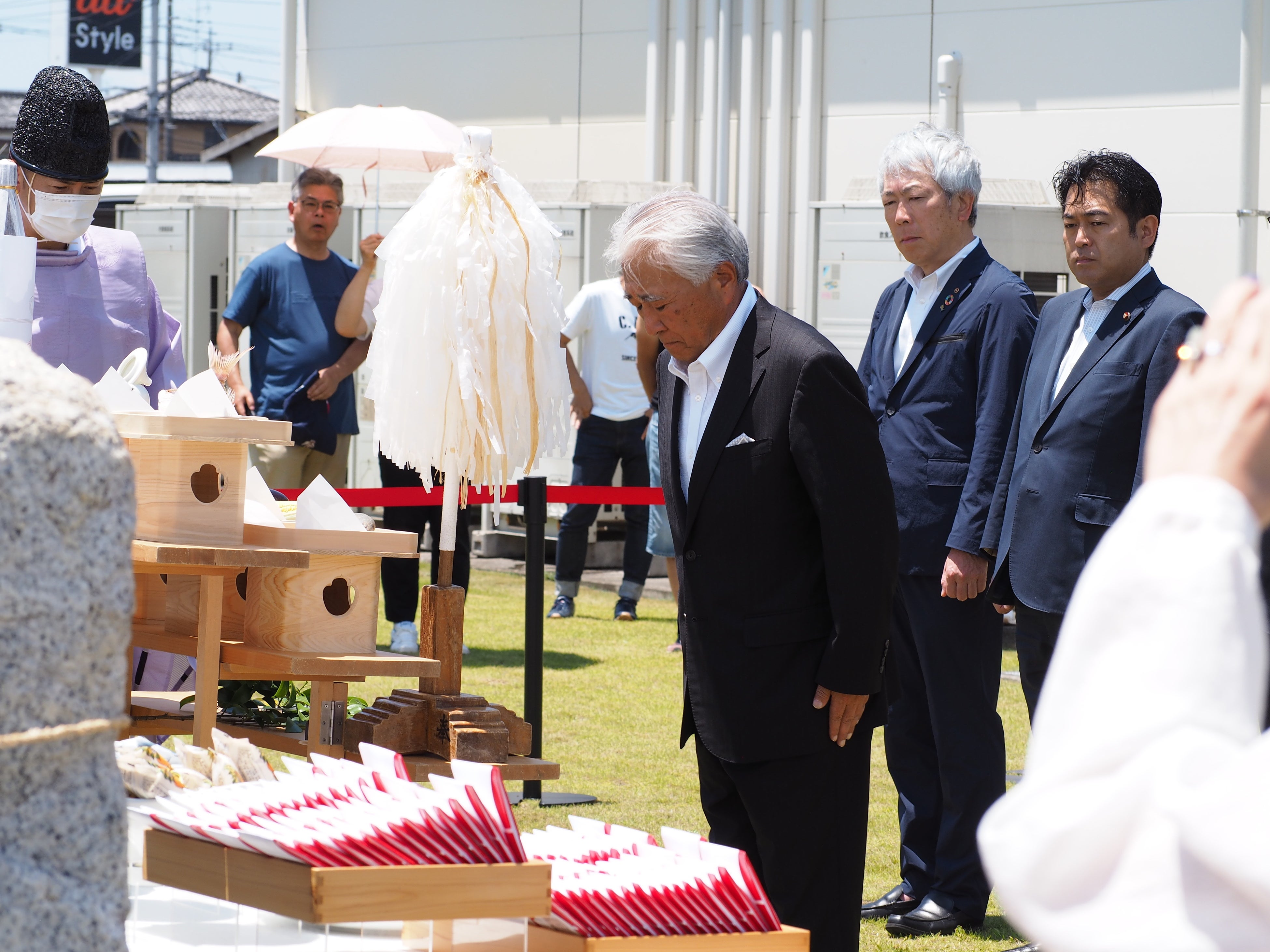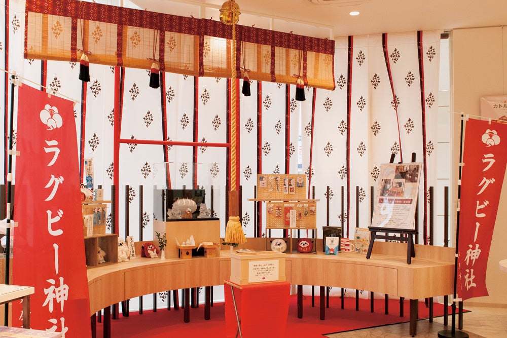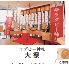 梅林堂箱田本店内ラグビー神社(寿康神社)にて大祭を斎行。埼玉パナソニックワイルドナイツより小山大輝選手・野口竜司選手、熊谷市長小林哲也氏、衆議員議員野中厚氏、熊谷商工会議所副会頭石山洋一氏にもご参列頂き、チームと選手の活躍、地域の発展を祈願しました。