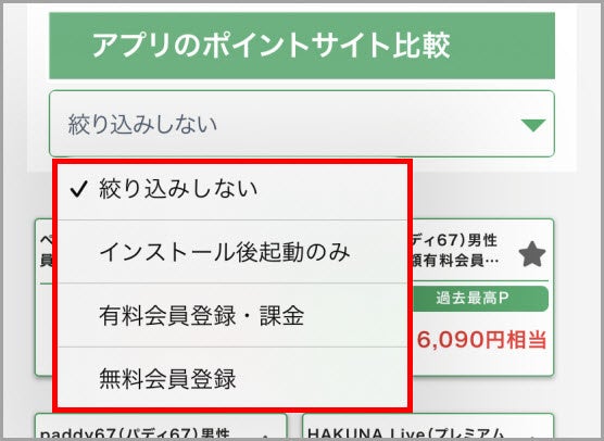 また、無料でポイントを獲得したい方も多いので「無料会員登録」の条件も付けています。