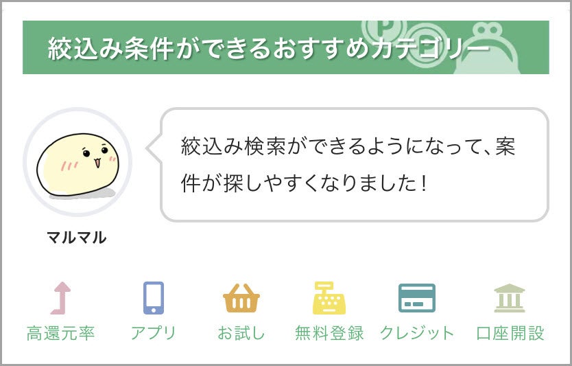 「ポイント比較ガイド」としてリニューアルし、さらに絞込み条件機能を追加しました。