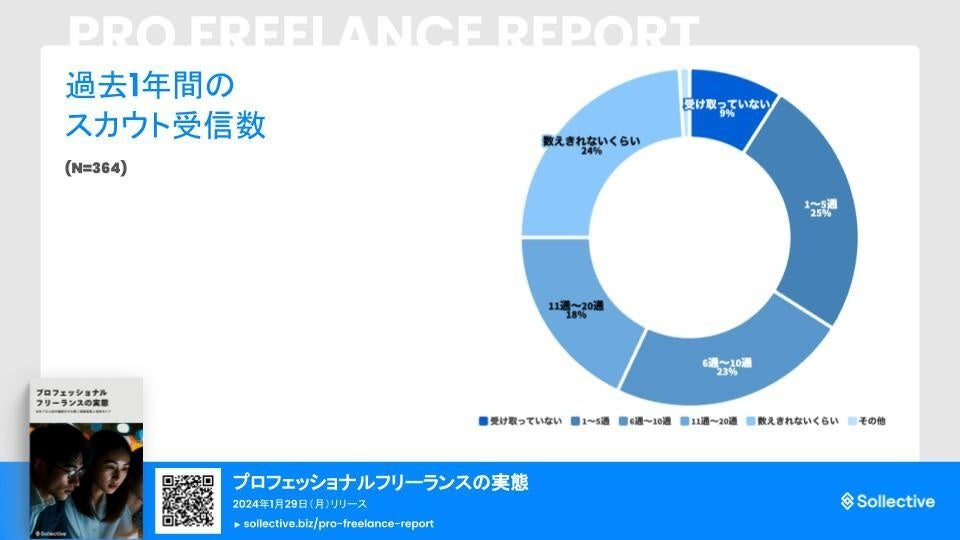 【特徴】プロフリーランスのうち、24%が数えきれないほどのスカウトを受け取っている