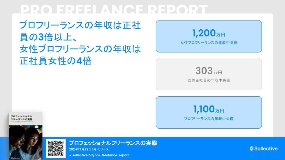 プロフリーランスの年収は正社員の3倍以上、女性プロフリーランスの年収は正社員女性の4倍