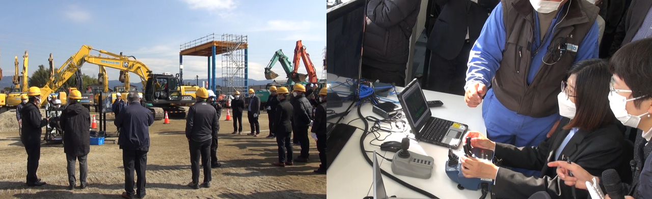 研修当日は、座学での講義だけでなく、実機を用いたデモンストレーションや3次元測量技術を利用したシステム、無人化施工支援システムの体験など行いました。研修参加者は、「自国でも高齢化が顕在化しており、建設の分野でも省人化などの取り組みが必須だと感じた。日本のすばらしい技術を持ち帰ってその技術を使える人を育成し、国の発展につなげていきたい」と述べられました。