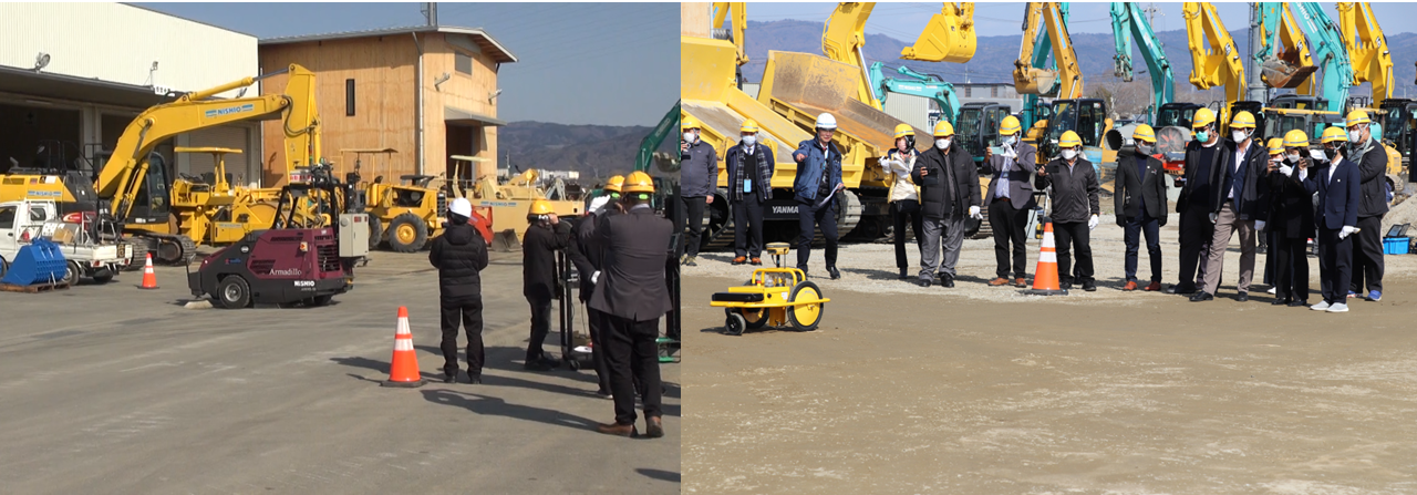 ・日本の電子基準点データを利用した、バックホウMC・自動運転スイーパー・マーキングロボットの視察、N-RTKローバーでのデモンストレーション。