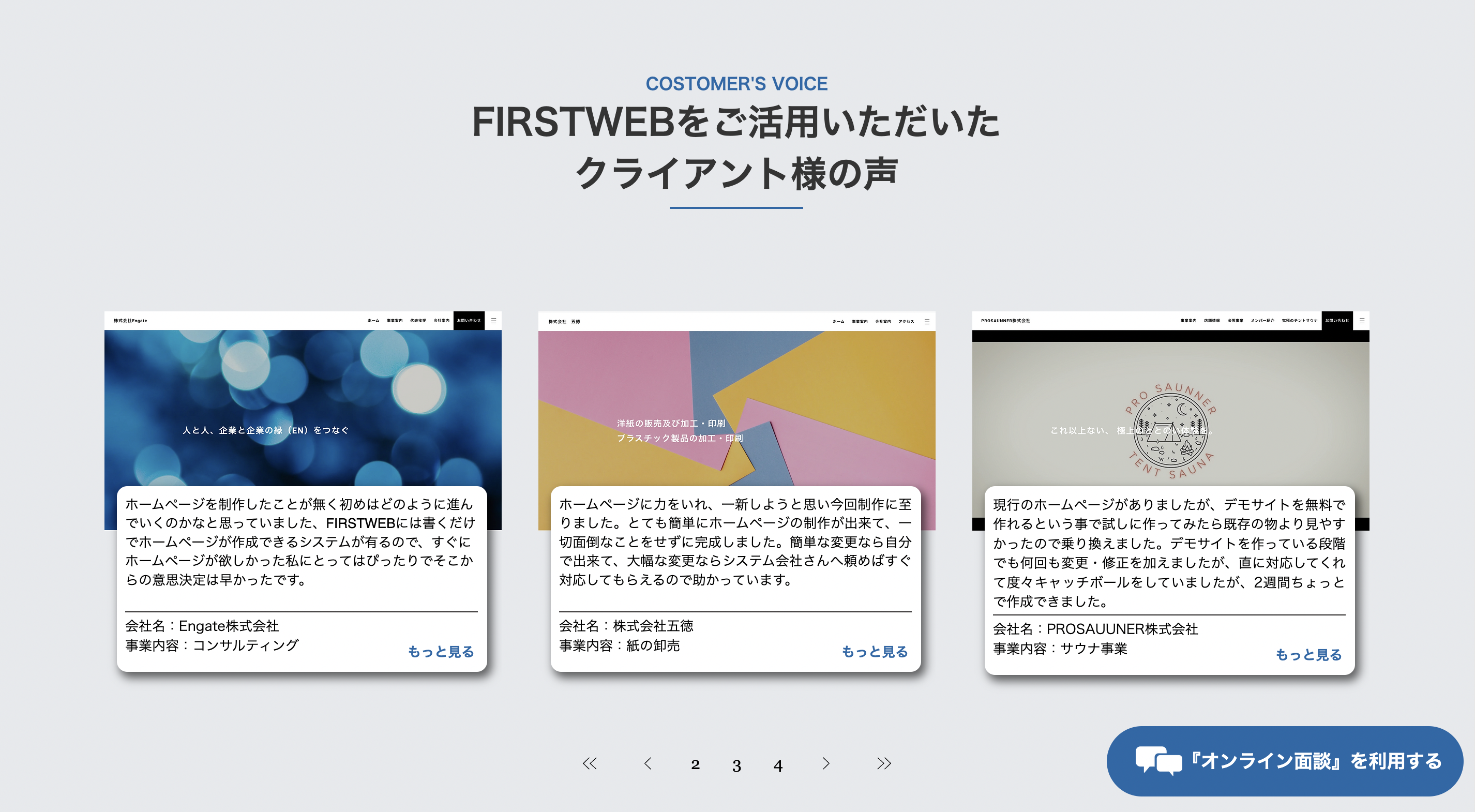 FIRSTWEB を導入したクライアント様の声も掲載しています。