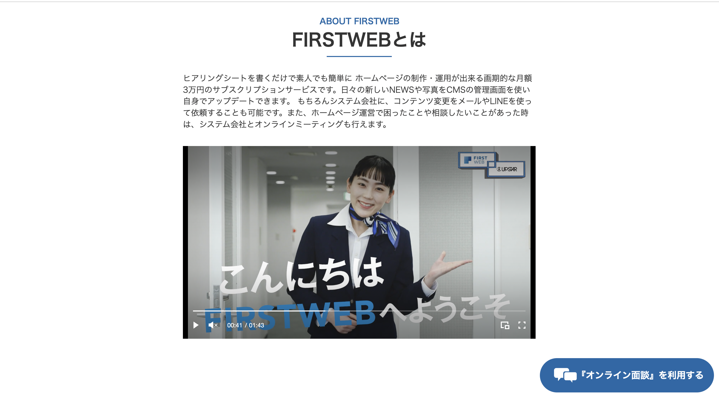 株式会社アップスター(本社:東京都港区 代表取締役 石井宜尚)は、サブスクリプションでホームページ制作・運用ができる「FIRSTWEB」販売促進用のLP(ホームページ)とプロモーションビデオを公開しました。