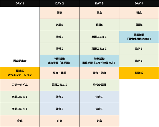 ◉集中した4日間・合宿型、ワオ高校のスクーリング・プログラム
