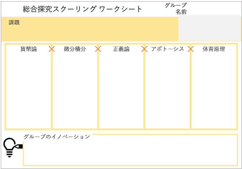 教養探究(哲学・科学・経済)を議論型授業で行う、唯一無二のワオ高校の「学育」。スクーリングのグループワークでは、「社会課題を解決する学習横断からのイノベーション(新結合)」 として、総合探究に取り組みました。例えば、「日本を良くする→労働環境が悪く不健康であるという課題を解決しよう。」というテーマでは、ワークシートをもとに生徒達が議論を重ねて、以下のような見事な結論に辿り着きました。