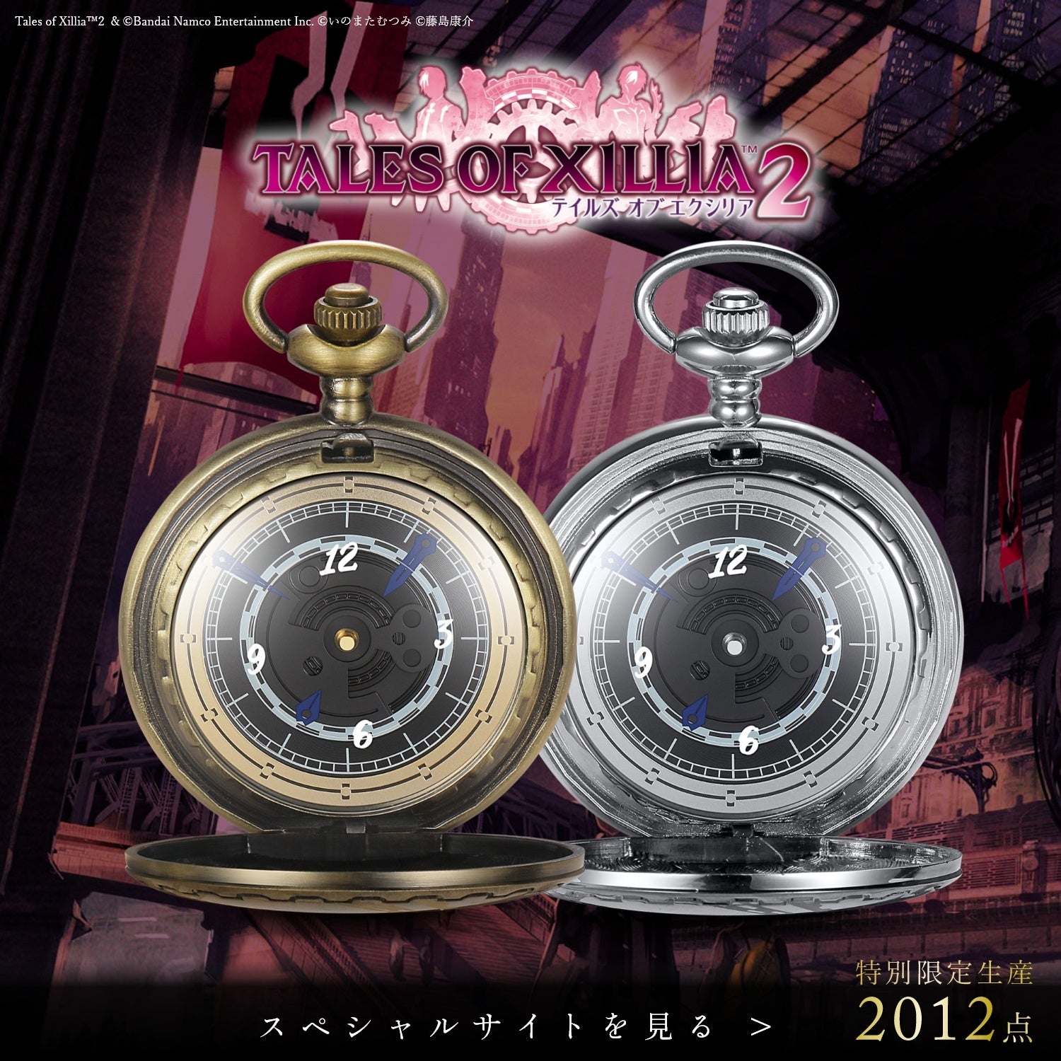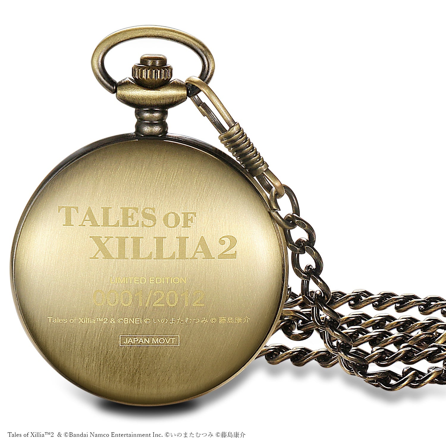 懐中時計の裏側には「テイルズ オブ エクシリア2」のタイトルと、ゲーム発売年に合わせた 特別限定生産 各2012点 を証明するエディションナンバーを刻印しています。