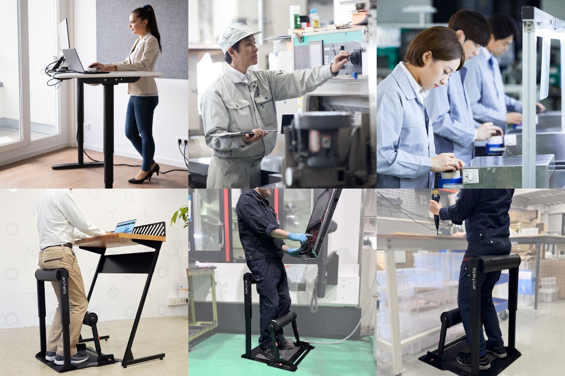 さまざまな作業シーンや工程に対応でき、現場に合わせた微調整により、立ち仕事中の負荷軽減効果を高めます。