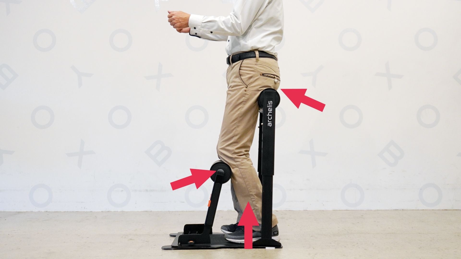 スタビツインはスネとモモで身体を支えて体重を分散し、姿勢のふらつきを抑えながら安定した立ち姿勢をサポートします。体重を“預けられる”支点が増えることで、長時間の立ち作業でも負担を軽減し、快適な作業を提供します。