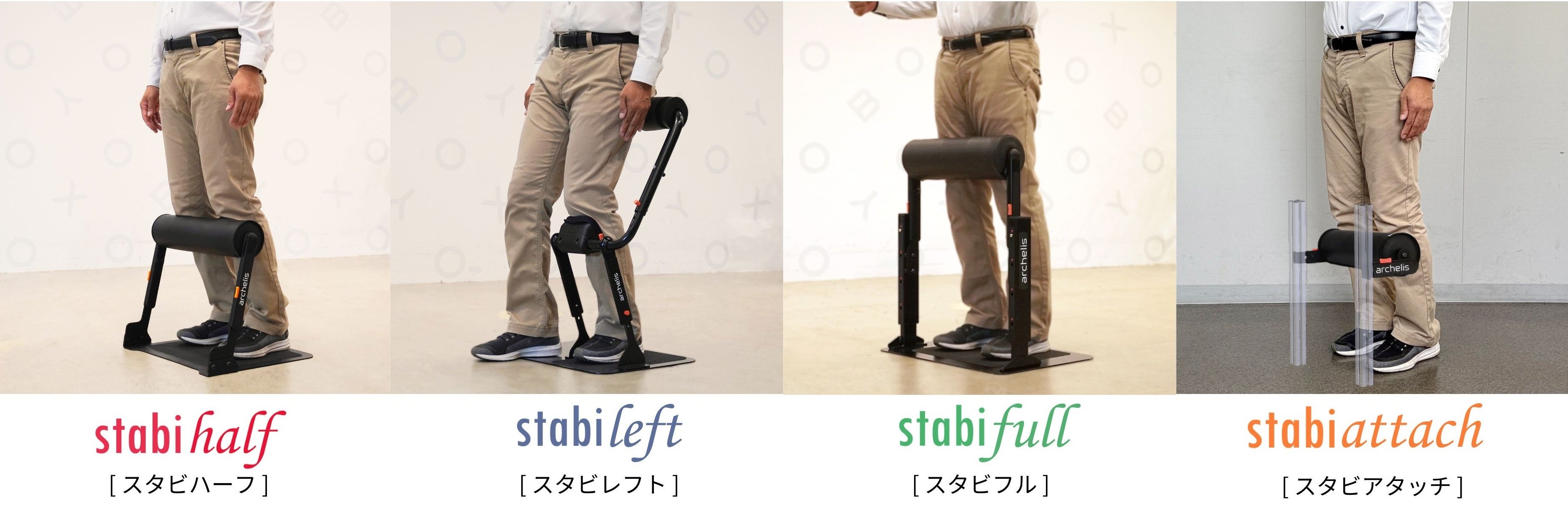 スタビシリーズは、立ち仕事による身体への負荷を軽減し、快適で効率的な作業環境を実現するために開発された革新的なデバイスです。それぞれのモデルが異なる特性を持ち、さまざまなシーンやニーズに応じて柔軟に活用できます。