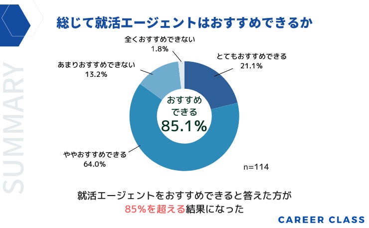 全体の85.1%が就活エージェントの利用をおすすめできると答えました。
