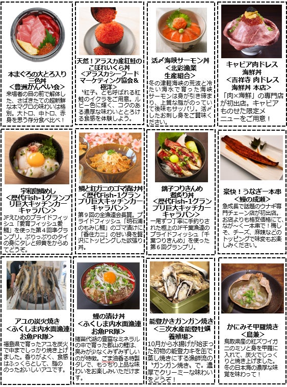 ※出店店舗、メニューは変更になる可能性があります。水揚げ状況等によっては産地や食材が変わる可能性があります。